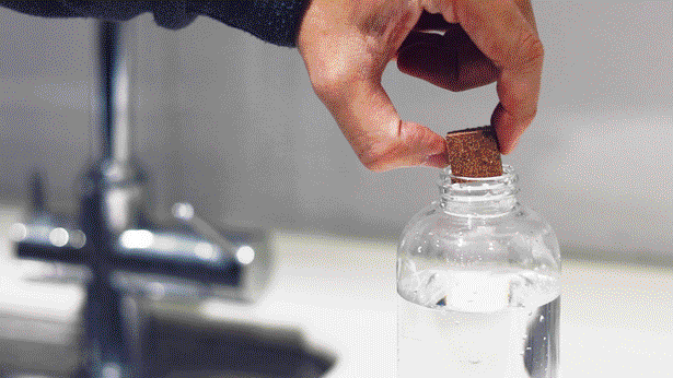 キューブ4個を450mLの冷水に入れてよく溶かします。ボトルのノズルを開けたまま、1時間以上置きます。