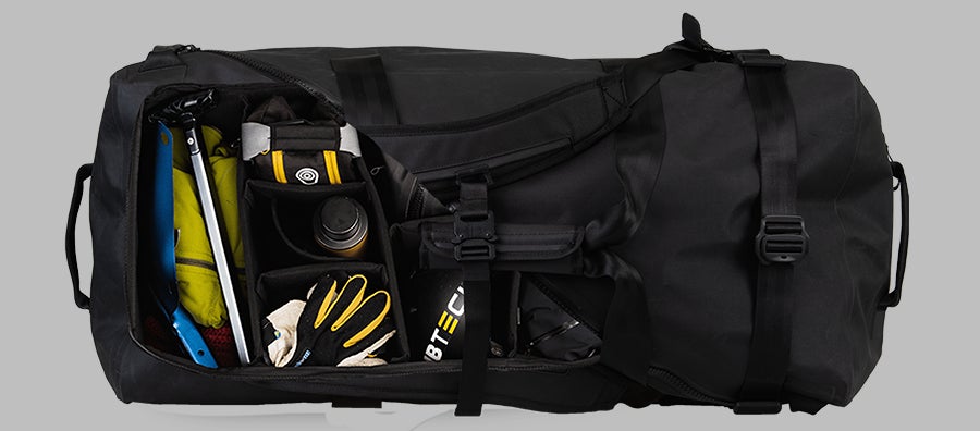 空気を入れてクッション状にすることで衝撃から守ります。55Lサイズにぴったり入る仕様です。