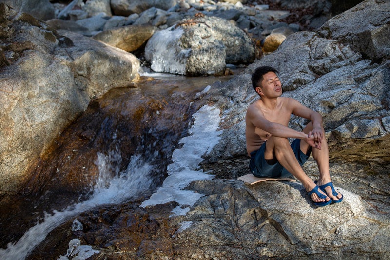 外気浴では地面の凸凹など気にせず座りたいところに広げ腰掛けることができ、ととのいのための場所を選びません。