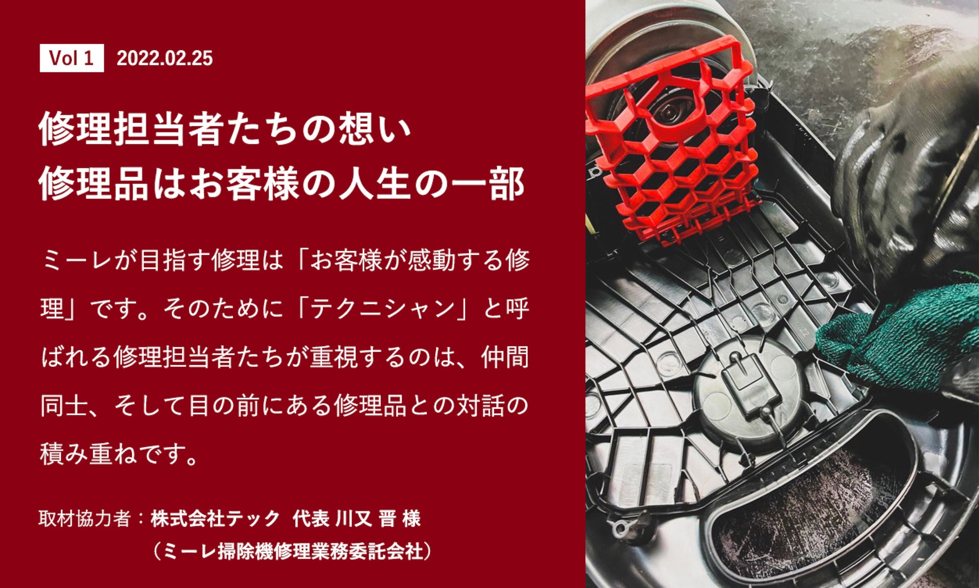 ミーレ掃除機ケア 修理サービスパッケージ』で、修理に真摯に向き合う担当者に、ミーレが目指す修理についてインタビューしました。特別コンテンツサイトhttps://contents.miele.co.jp/servicestories/story1.htmlにて公開します。