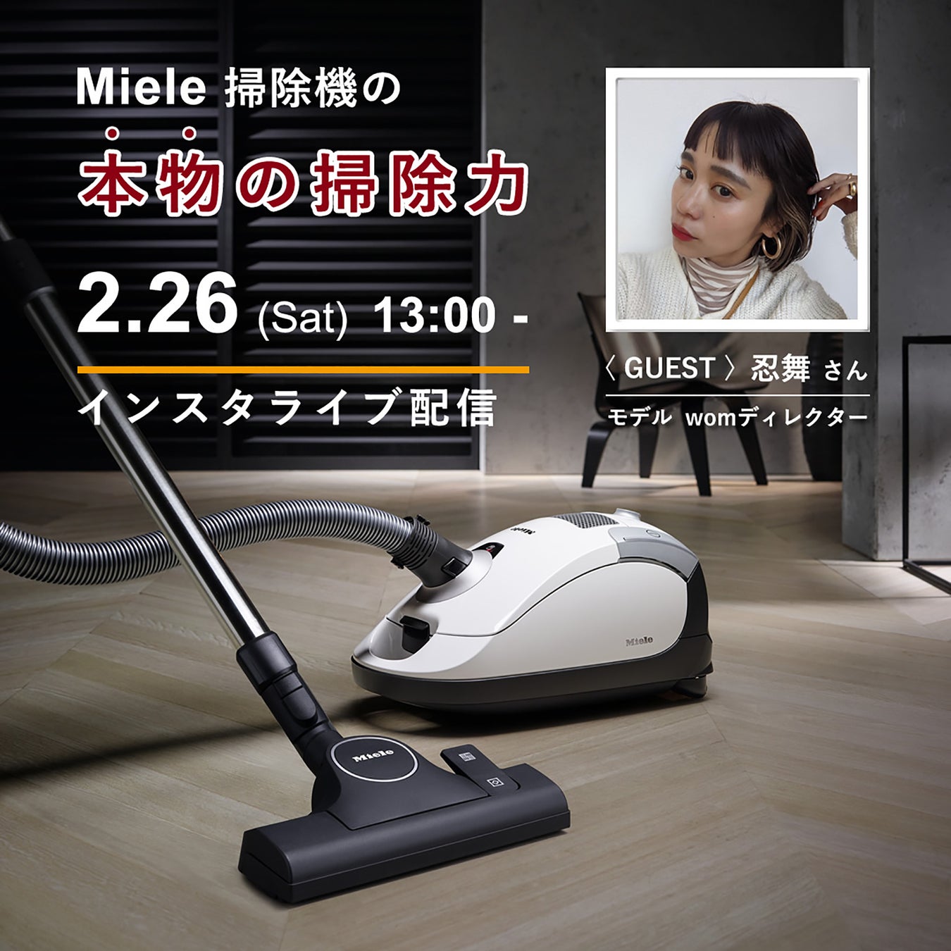 ◎2 月 26 日 ( 土 ) 13:00 よりモデル・wom ディレクターの忍舞さんをゲストに『Miele 掃除機の本物の掃除力』インスタライブを開催