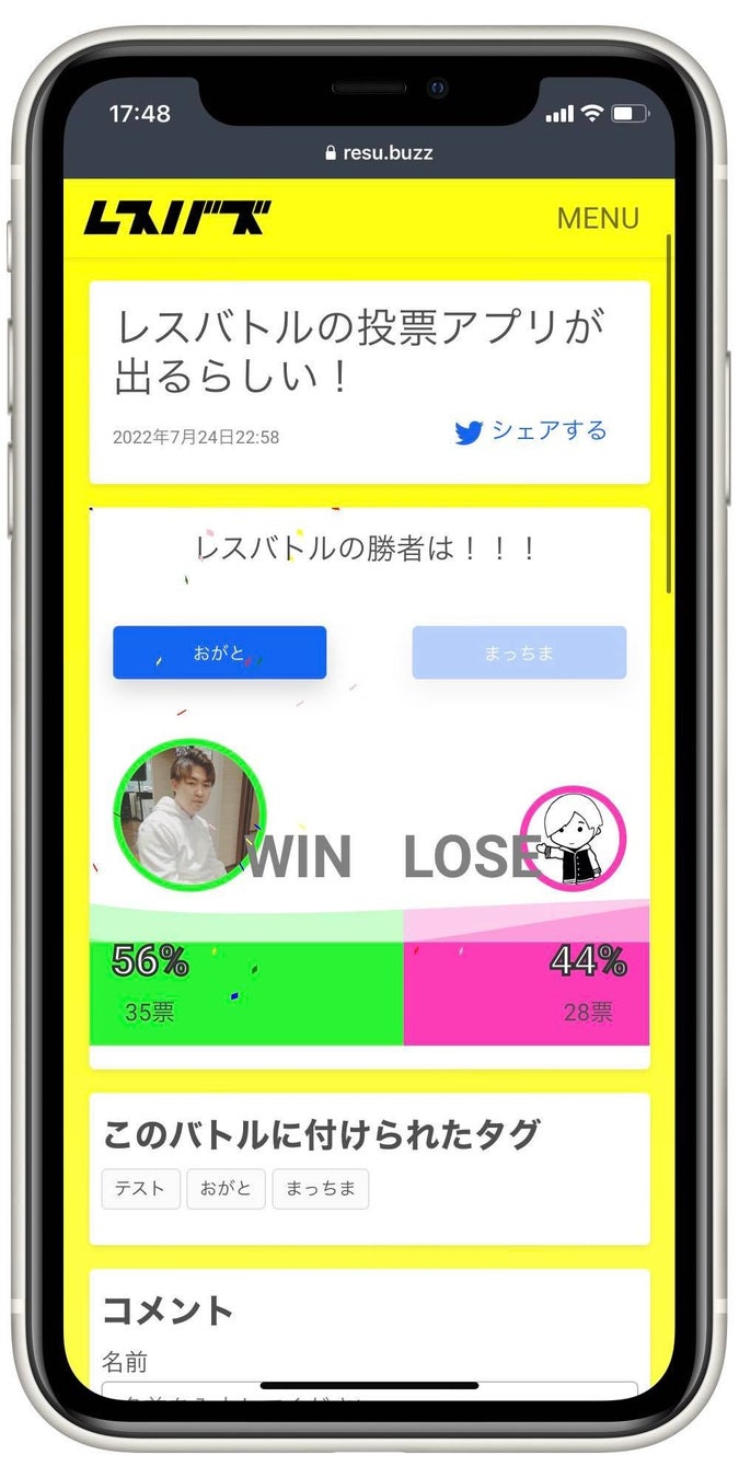 ツイッターで発言する勇気がないという人も匿名での投票なら気軽にできるため多くのユーザーで論争を楽しむことができます。投票後には匿名のコメントも投稿することができます。