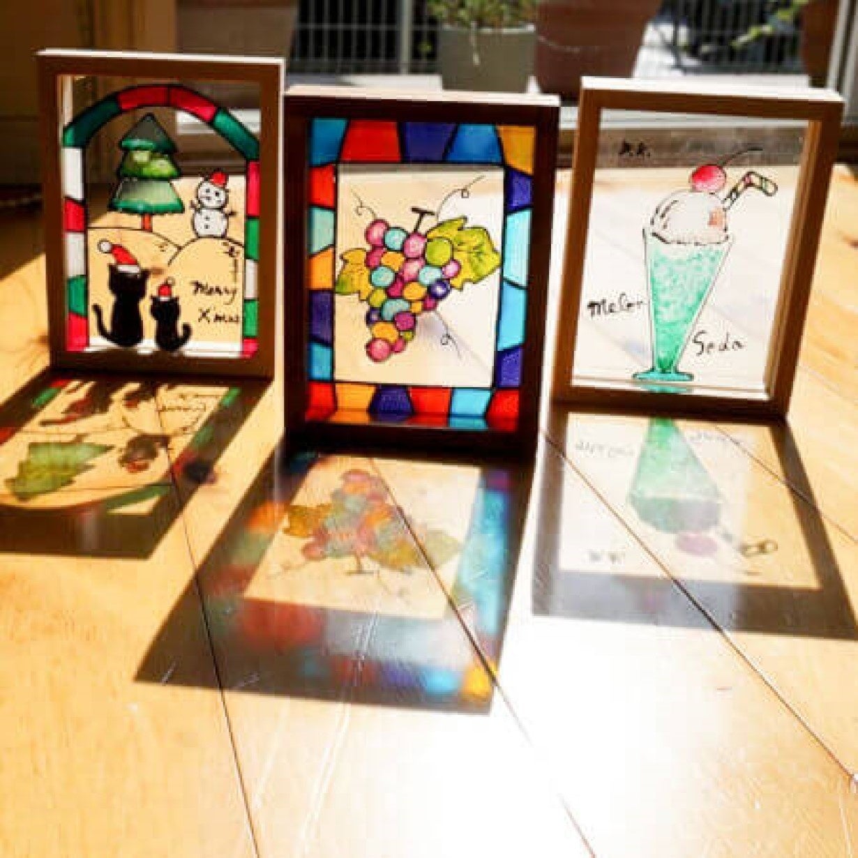 家具製造業を営む木村名誉教授の知人が、液体になった中間膜に、作業場にあった塗料を混ぜて着色し、スポイトでその液体をアクリル板に塗り、朝顔の絵を描いたところ・・・