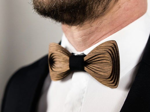 「Makuake」で限定先行販売するモデルは、Hermandiaのベストセラーモデル、アンテロ。クラシックな蝶ネクタイを斬新に解釈し、作り上げた逸品です。切り取った木の板を何層かに重ねた立体感のあるデザインは、「人生の階段を一段ずつ上がっていく」ことを表現しています。
