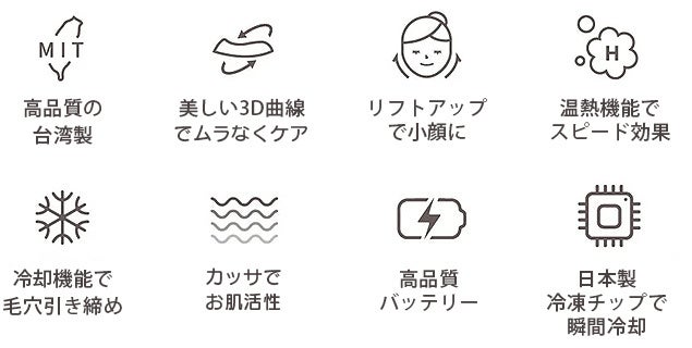 日本製の冷凍チップ搭載で瞬時に12℃まで下がり、むくみや毛穴引き締めに働きかけます。