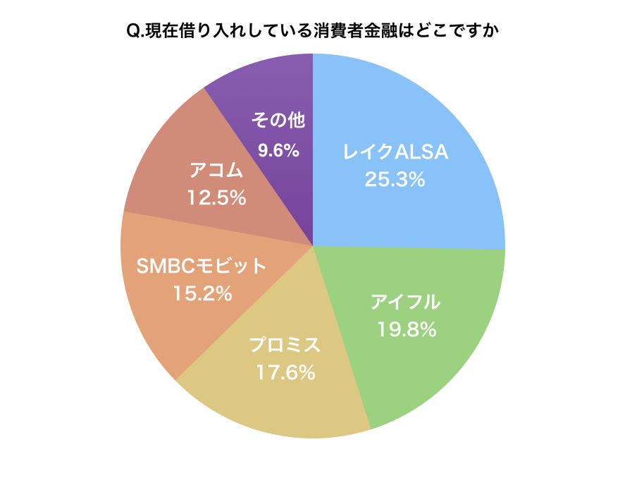 上記で消費者金融のカードローンと回答した人を対象に、利用したカードローン会社について質問したところ、大手5社が全体の9割を占める結果となりました。
