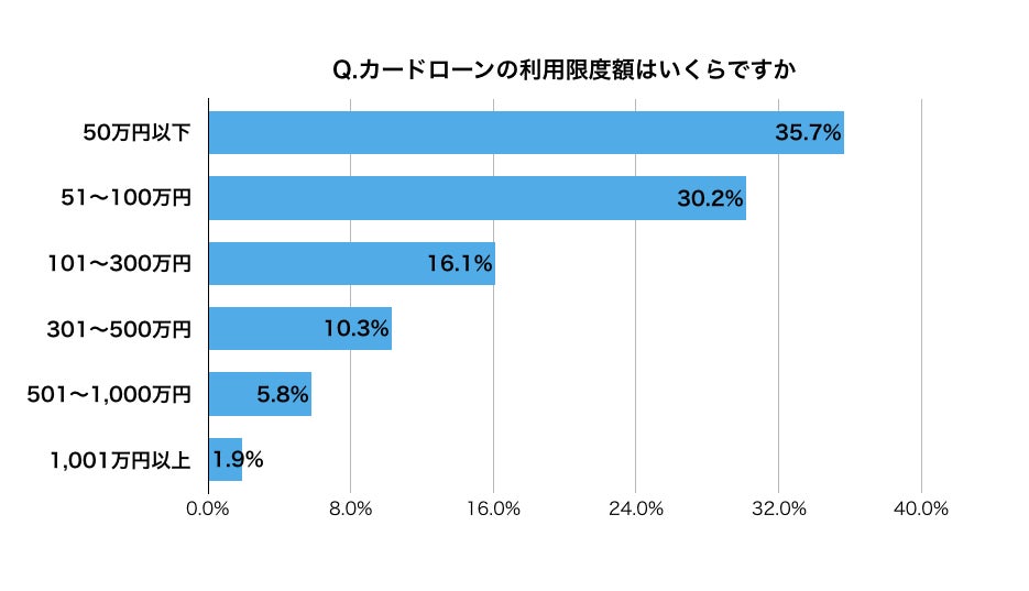 カードローンの利用金額は50万円以下と回答した人が、35.7%で最多になりました。