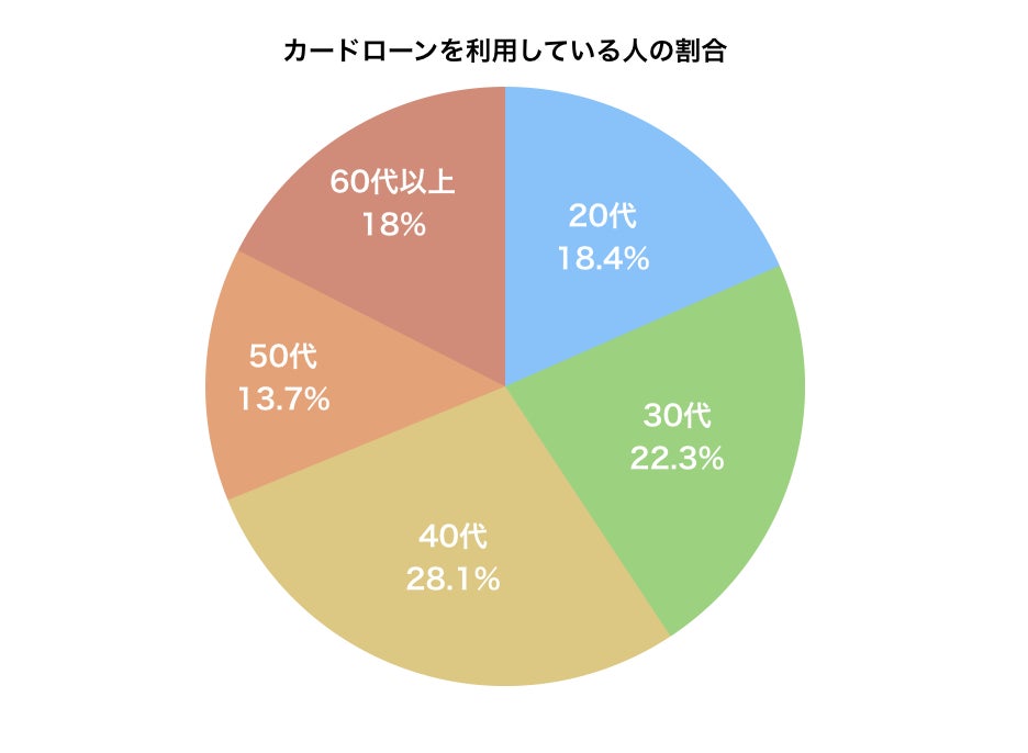 一方で50代と60代の割合はどちらも1桁台であり、初めて借り入れする場合にカードローンが選択されづらいことがわかります。