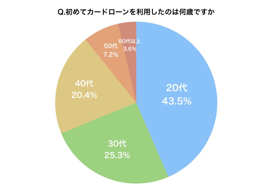 初めてカードローンを利用した年齢は20代と回答した人が、全体の43.5%という結果になりました。