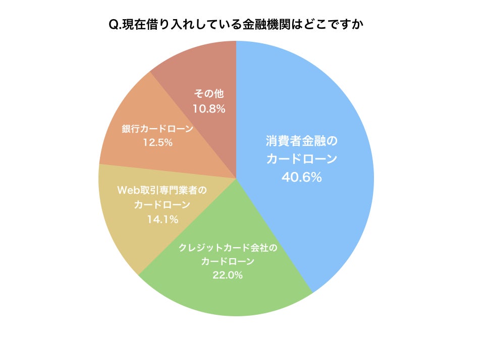 カードローンを利用している人の借り入れ先として選ばれているのは、貸金業者のカードローンでした。