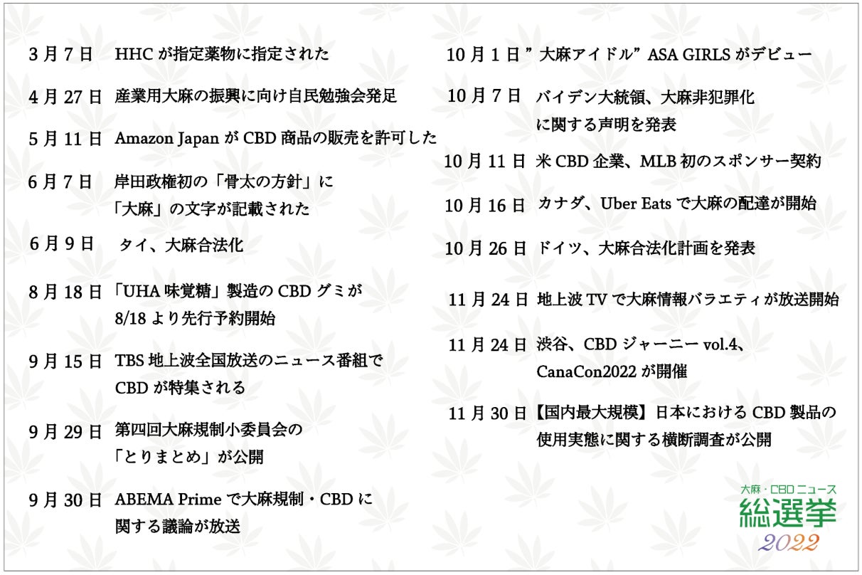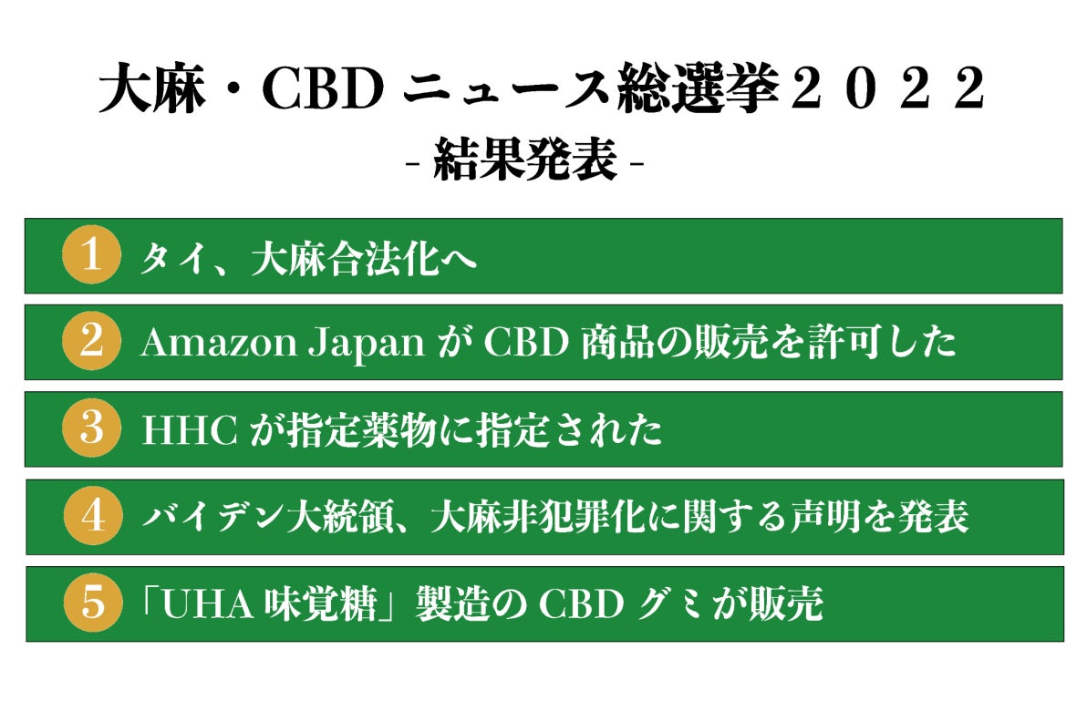 『2022年 大麻・CBDニュース総選挙』の投票結果は、以下の通りです。