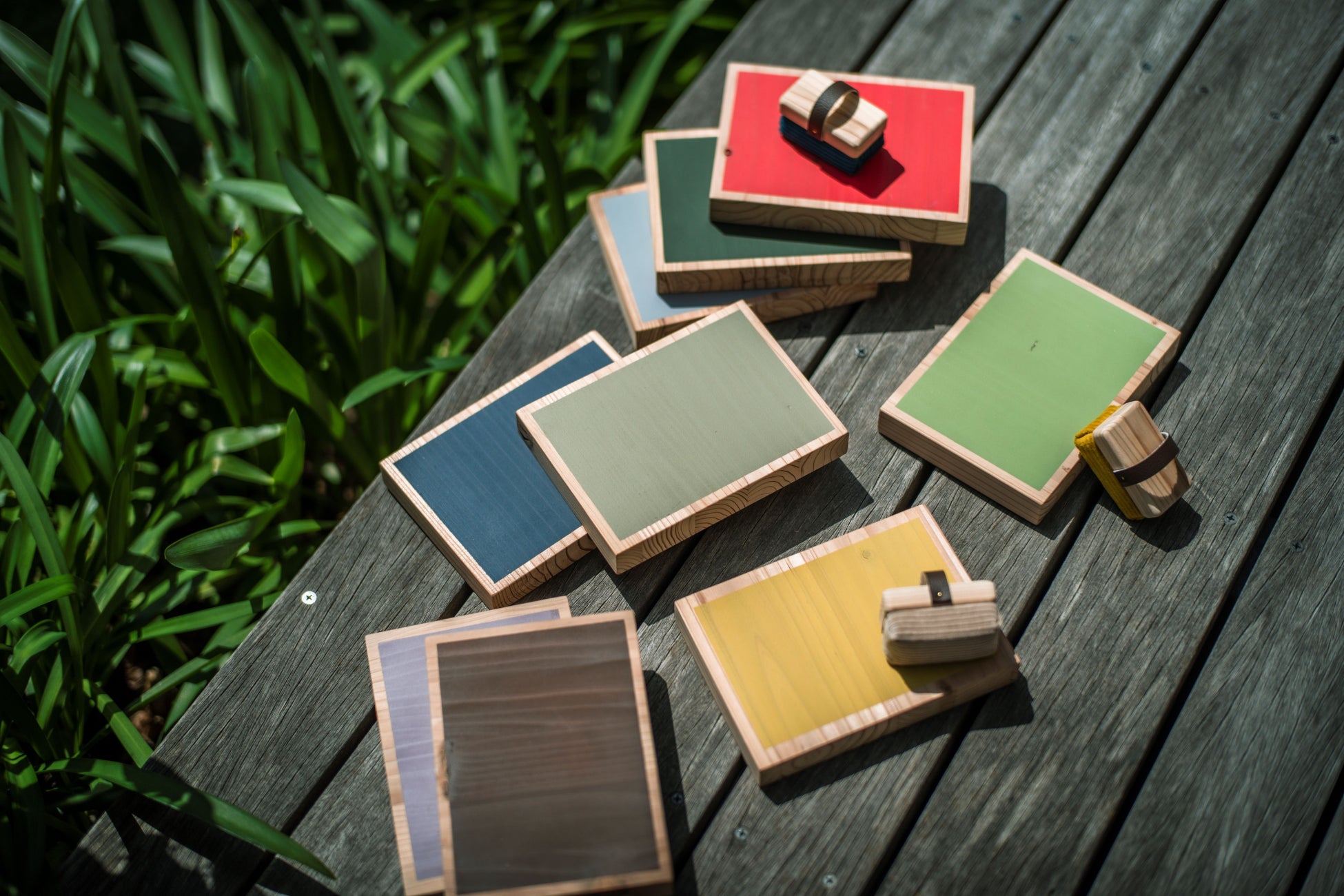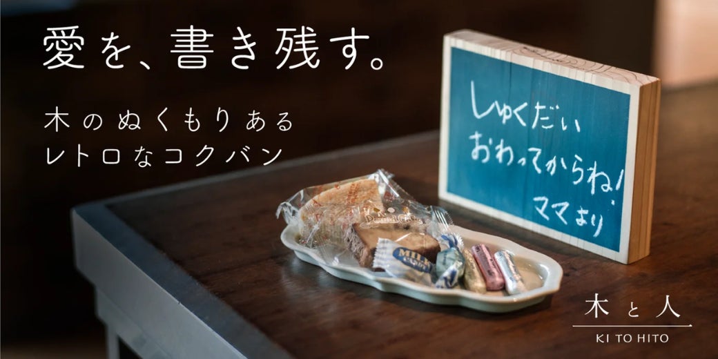 木板に書くという体験は、大人にはなつかしく、子どもははじめてかもしれません。日本の固有種・杉の端材を活用した木のコクバン「カクカク」は、古くて新しい手書きのコミュニケーションを思い出させてくれます。