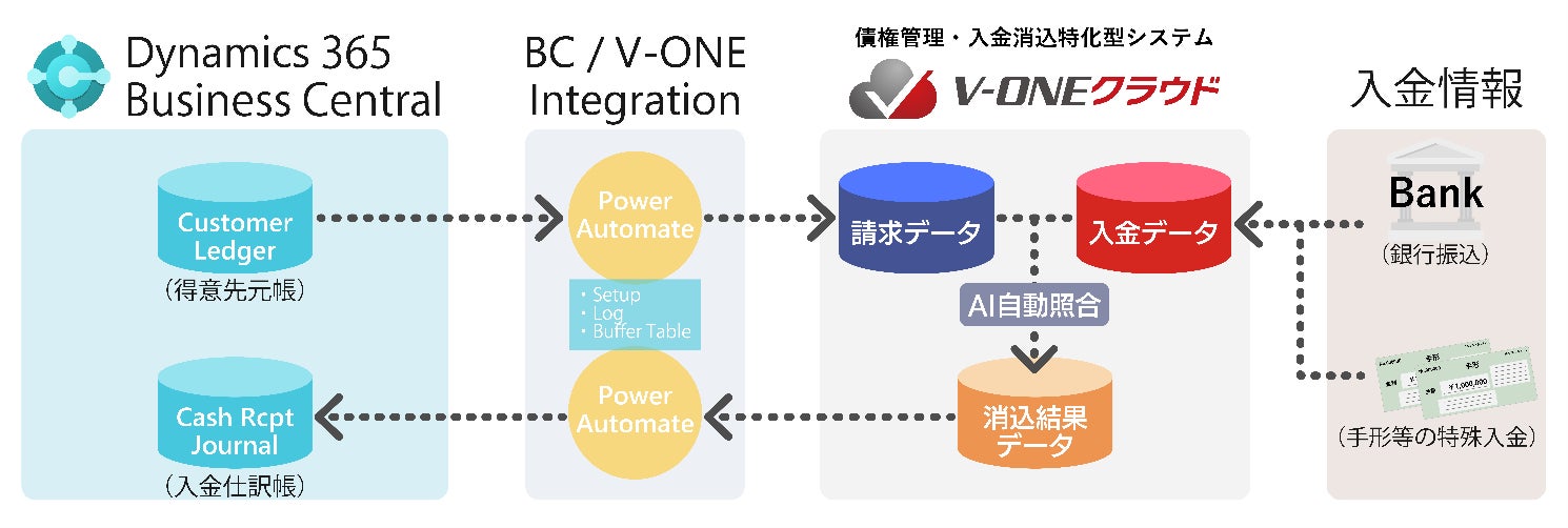 中小企業向け統合型ERP「Dynamics 365」と債権管理・入金消込システム「V-ONEクラウド」のデータ連携ソリューションが登場