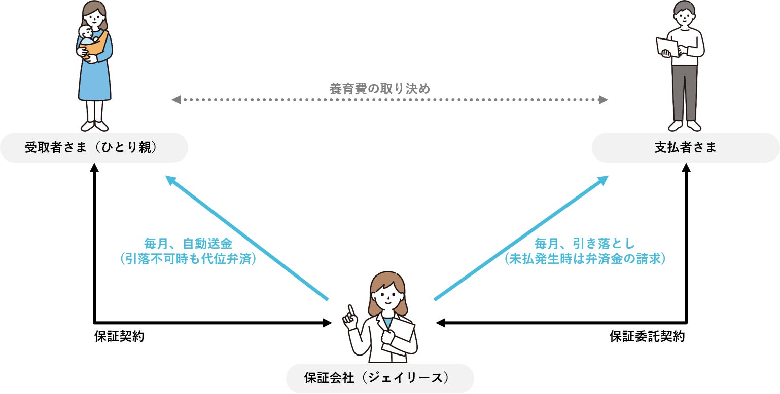 契約形態 | 3者間契約(養育費支払者、養育費受取者、保証会社) |