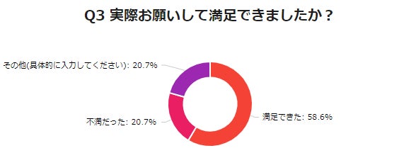 工事内容に「満足できた」は58.6%で、「不満だった」と回答している20.7%は、その後別の業者への依頼なども考えると正しい業者選びは重要だと考えます。