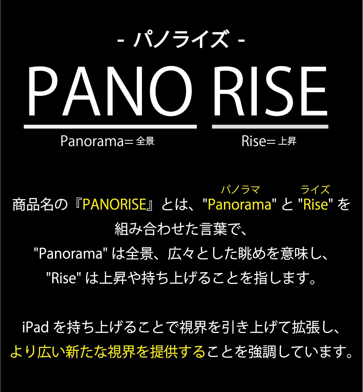 圧倒的な高機能iPadケース 「PANORISE(パノライズ)」が新登場。2024年冬の一般販売を前に、先行してMakuakeにて発売決定!通常のiPadケースのように30°・60°に角度を調整できるだけでなく、iPadの高さを11cm持ち上げることができます。高さを上げることで首の角度が上がり、猫背になりがちな姿勢を正します。その結果、肩や首を楽にすることができます。また、視野が広がるため、横になってiPadで動画を見ながらも家族やペットなど周りのことを視野に入れることもできます。しっとりとした手触り・手になじむような適度な厚みで設計しており、あなたにとっての新しい「スマートパートナー」として欠かせなくなる一品です。あなたもこの驚きの機能を備えた「PANORISE」で安心と快適さを手に入れ、仕事や趣味で最高のパフォーマンスを発揮してみませんか?