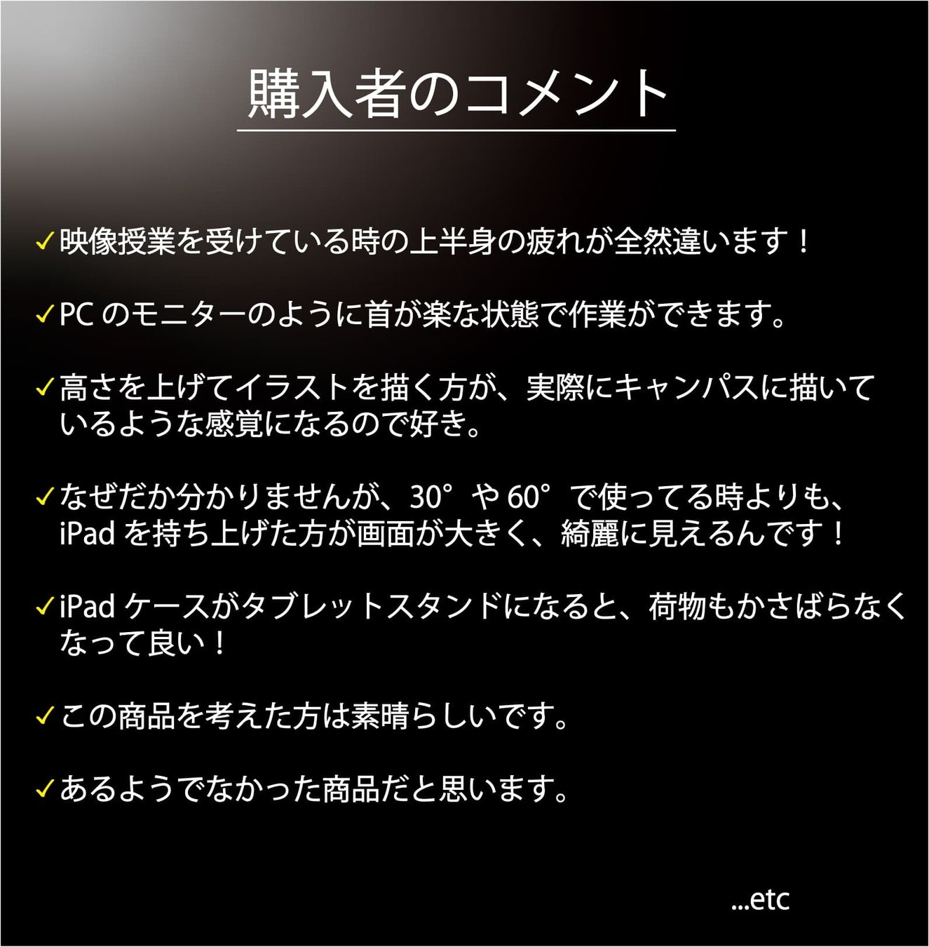 そこで私は「iPadを高く持ち上げ、尚且つかさばらない様にケースにもなるスタンドがあったら猫背による首や肩の悩みやすぐに集中力が切れることも無くなるのではないか。」と考えたのです。