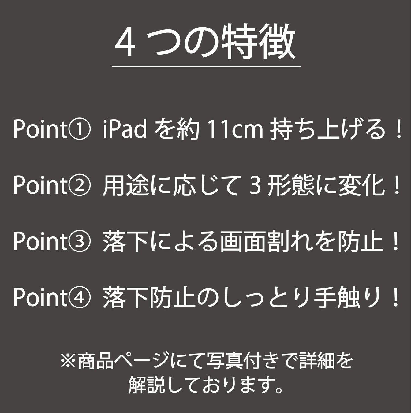 肩首の悩みを持つすべてのiPadユーザーに届け!この "新時代の3WAYスマートパートナー" はあなたのiPadを11cm引き上げ、首肩を楽に&視野も拡大で快適作業をサポートします。