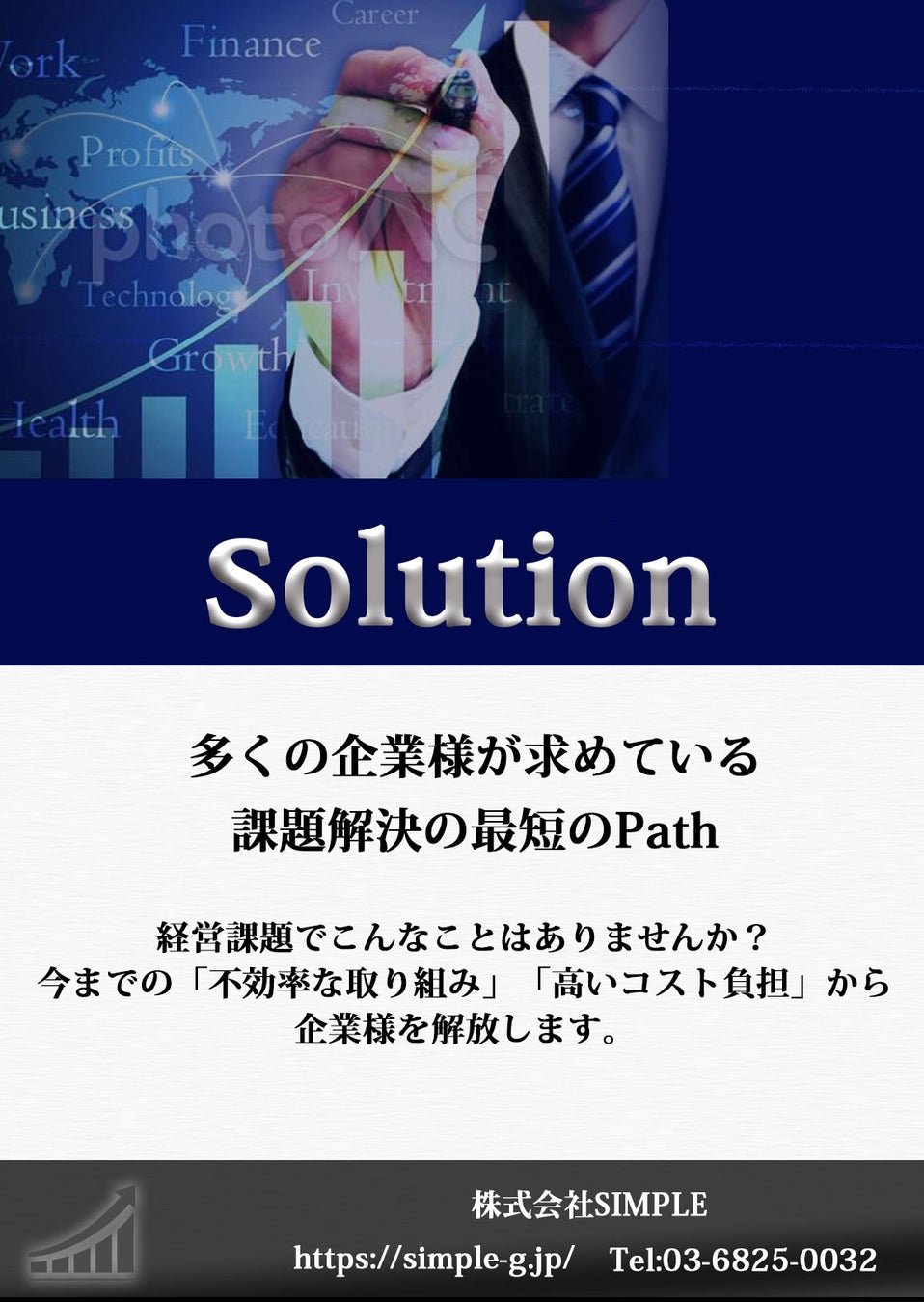 SIMPLEのソリューション(課題解決)は、ビジネスプロセスの最適化、業務の効率化、組織の変革、新たな戦略の策定など、さまざまな目標やニーズに対応することができます。