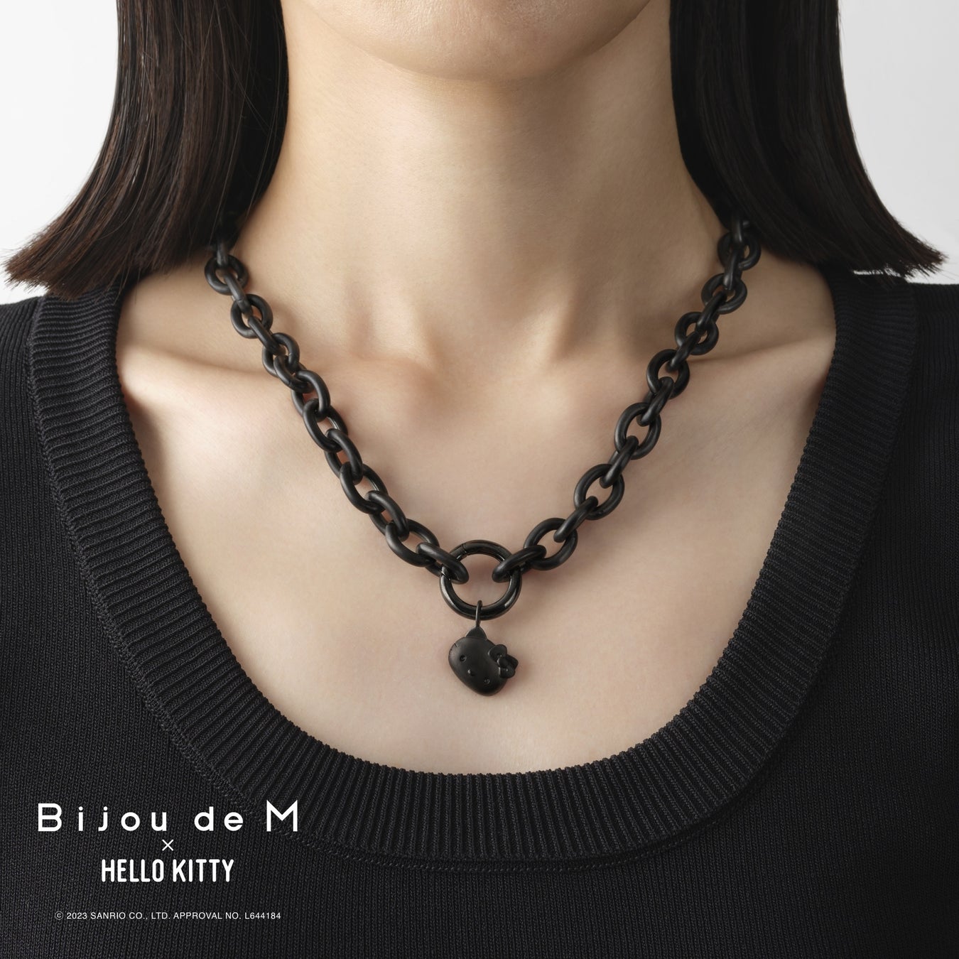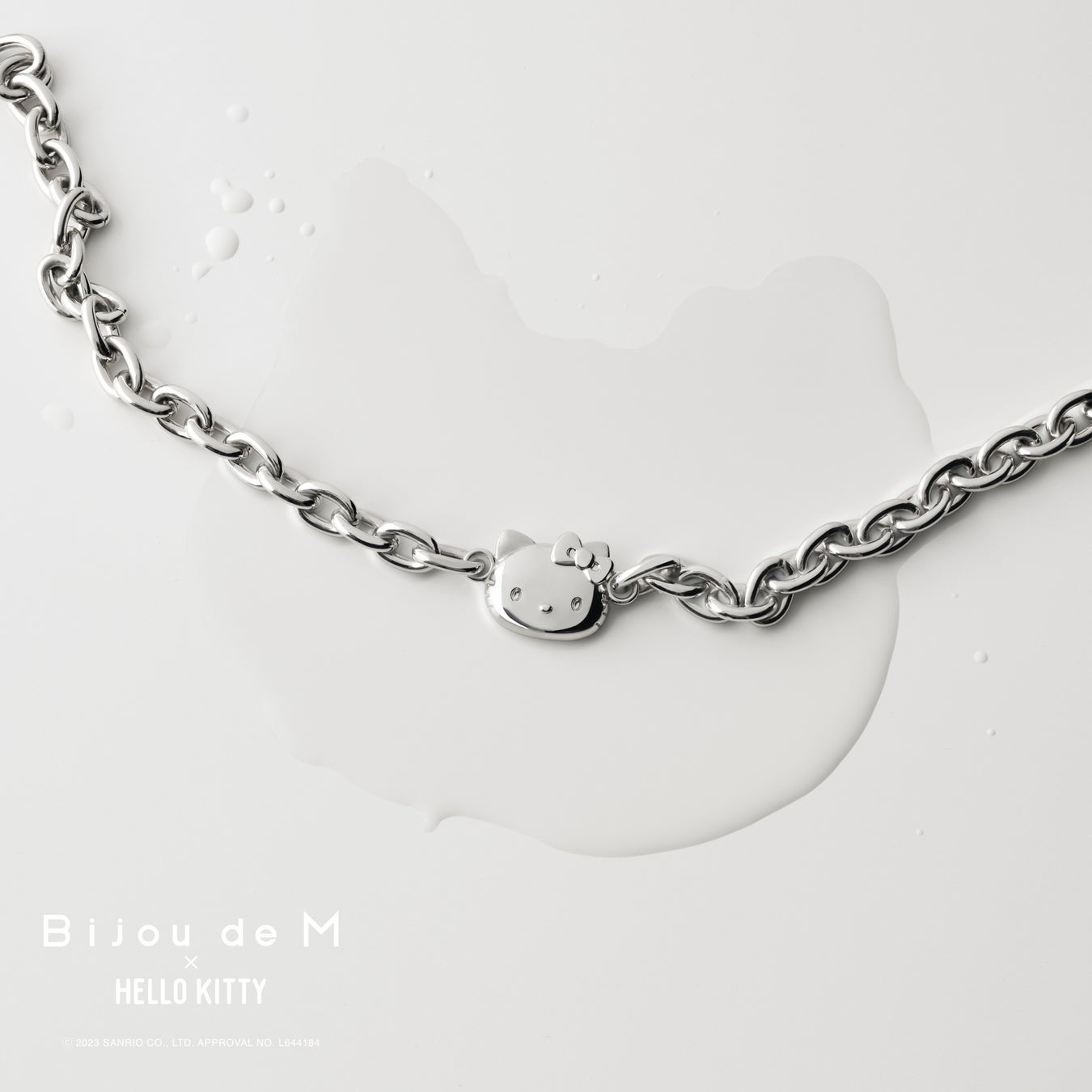 アイコニックなHELLO KITTYのフェイスとBijou de Mが得意とするチャンキーチェーンを組み合わせたネックレスが誕生しました。今までのBijou de Mよりも少しクールでポップに昇華させた、常に日本のポップカルチャーの中心にいるHELLO KITTYの50周年にふさわしいコレクションが誕生しました。