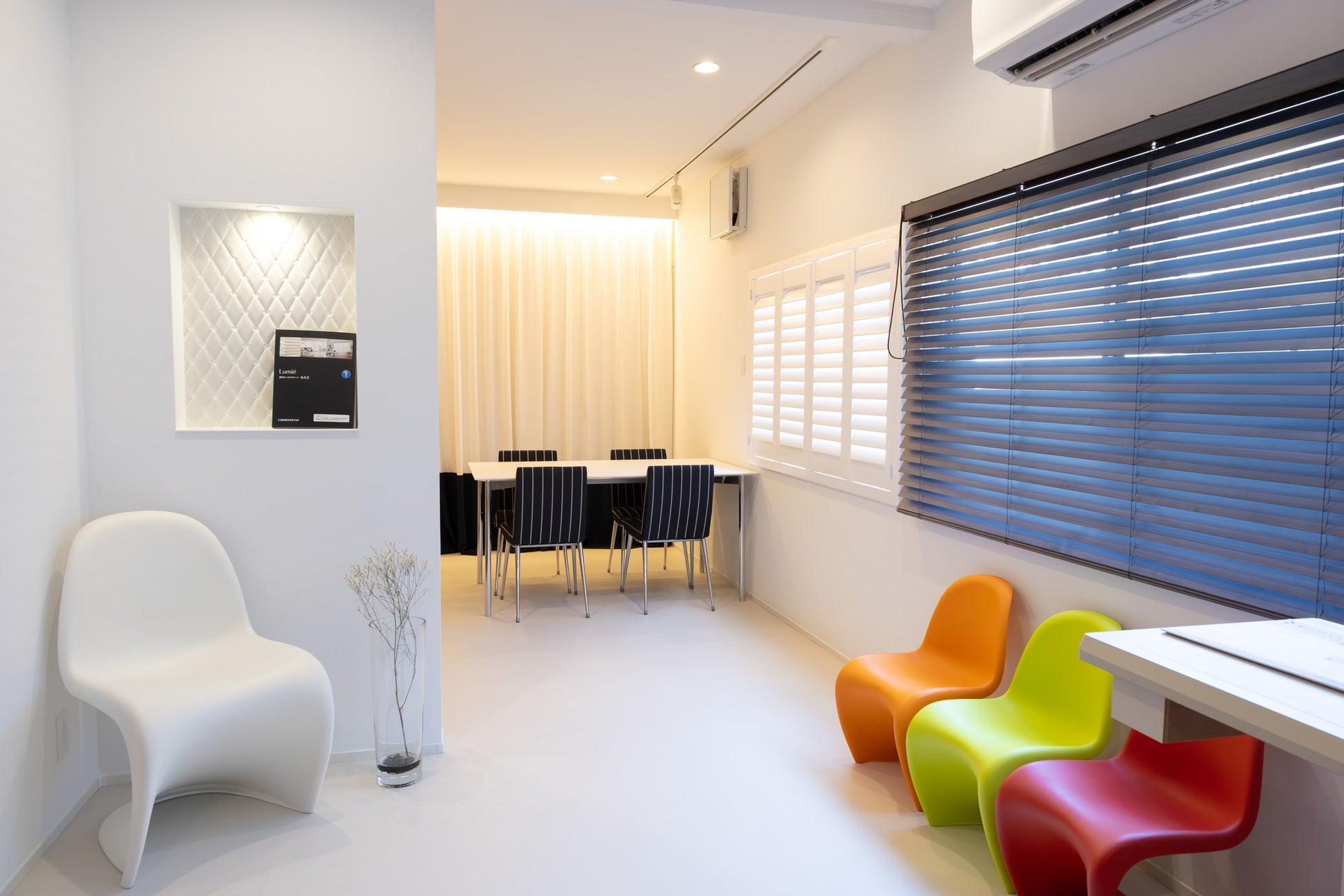 実は、この全ての商品は購入が可能。気に入っていただけたお客様には、その場で在庫を確認、後日ご自宅にお届けいたします。カーテン・ブラインドだけでなく、サロンにお越しいただいた際、イメージを膨らませることのできる空間となっています。