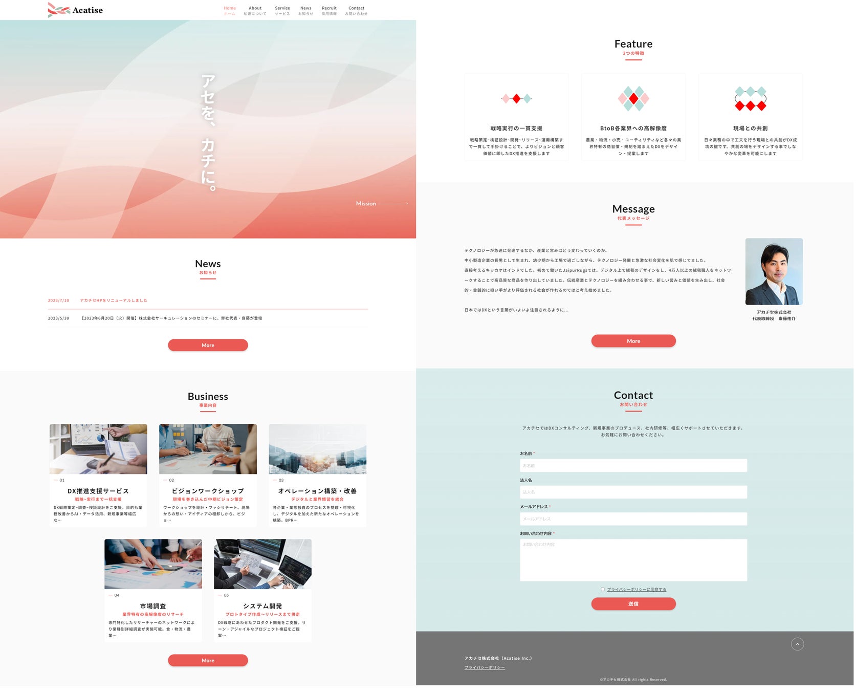コーポレートロゴの刷新に伴い、Webサイトもリニューアルいたしました。新しいWebサイトは、現状に課題を感じ解決策を探している方や、アカチセの取り組みに興味を持っていただいたすべての皆さまとの始まりの場所となります。私たちが提供するサービスや強みについて、より直感的に理解していただけるようなデザインを目指しました。今後は、事例や代表による研究成果など、事業や研究を通して得られたナレッジを発信していく場としても活用していきたいと考えています。