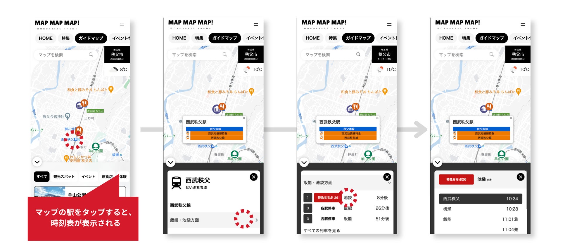 カテゴリ別のスポット表示、スポット検索、駅時刻表表示など、ユーザビリティを大幅に向上させる多数の機能を搭載しています。これらの機能は、訪問者が必要とする情報を迅速に得られるよう設計されています。