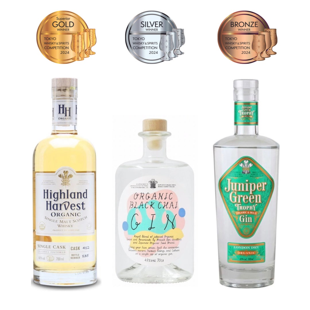 TWSC 2024 最高金賞:有機ハイランドハーベストシングルモルトウイスキー【Highland Harvest Organic】他ジン2本同時受賞