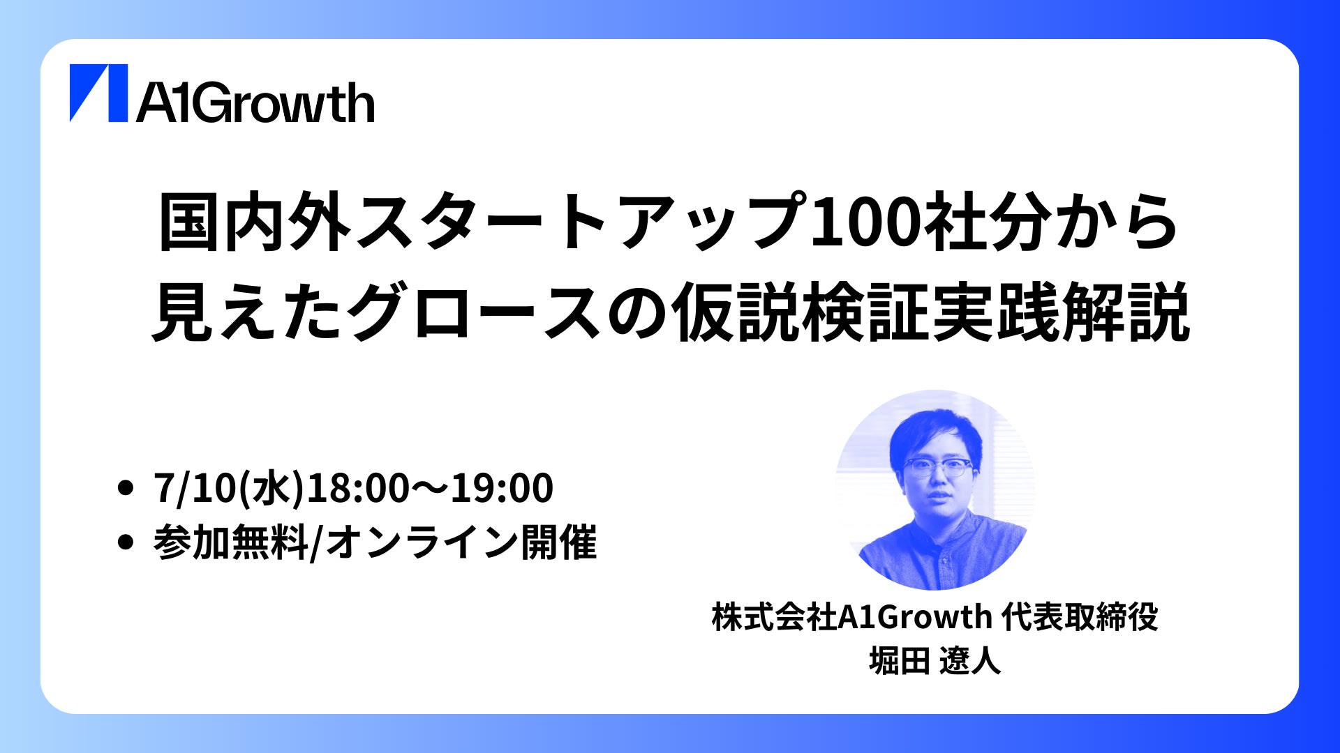 7/10(水)リリース記念「国内外スタートアップ100社分から見えたグロースの仮説検証実践解説」セミナー開催