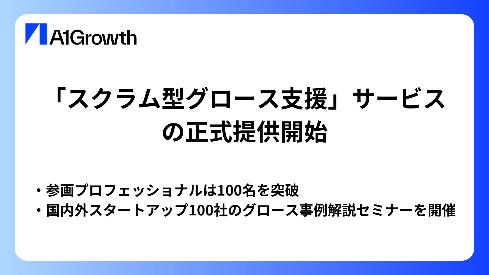スタートアップ特化型グロースエージェンシーのA1Growth、「スクラム型グロース支援」サービスを正式に提供開始