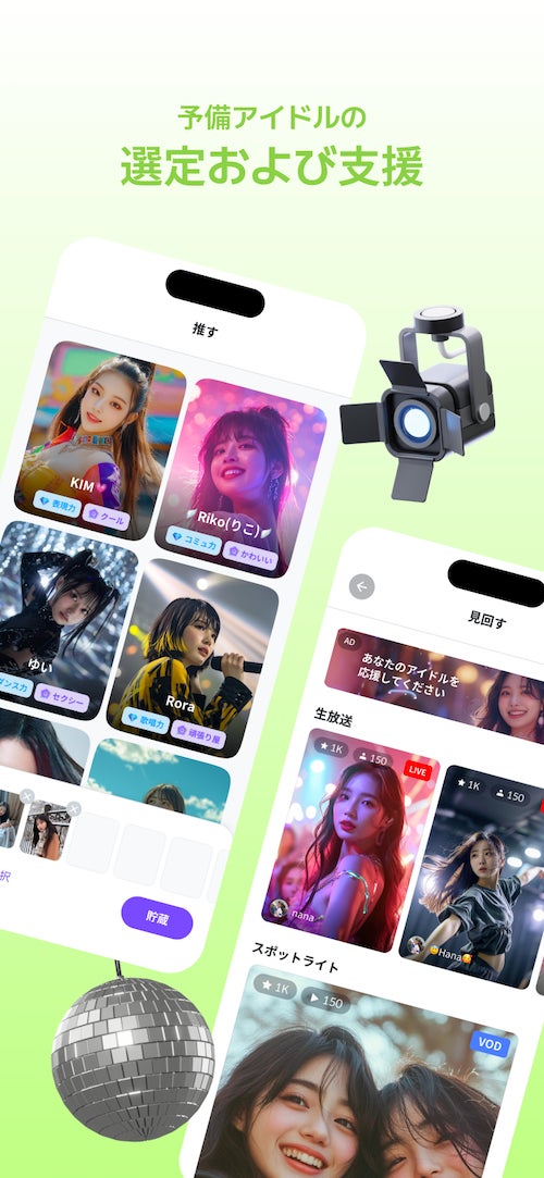 一方、アイドルを応援したいファンの方は、本アプリ内でアイドルを本格デビューさせる「プロデューサー」となり、アイドル候補生を評価したり、ミッションを応援するなど、アイドルとのコミュニケーションを取りながら、応援をすることができます。