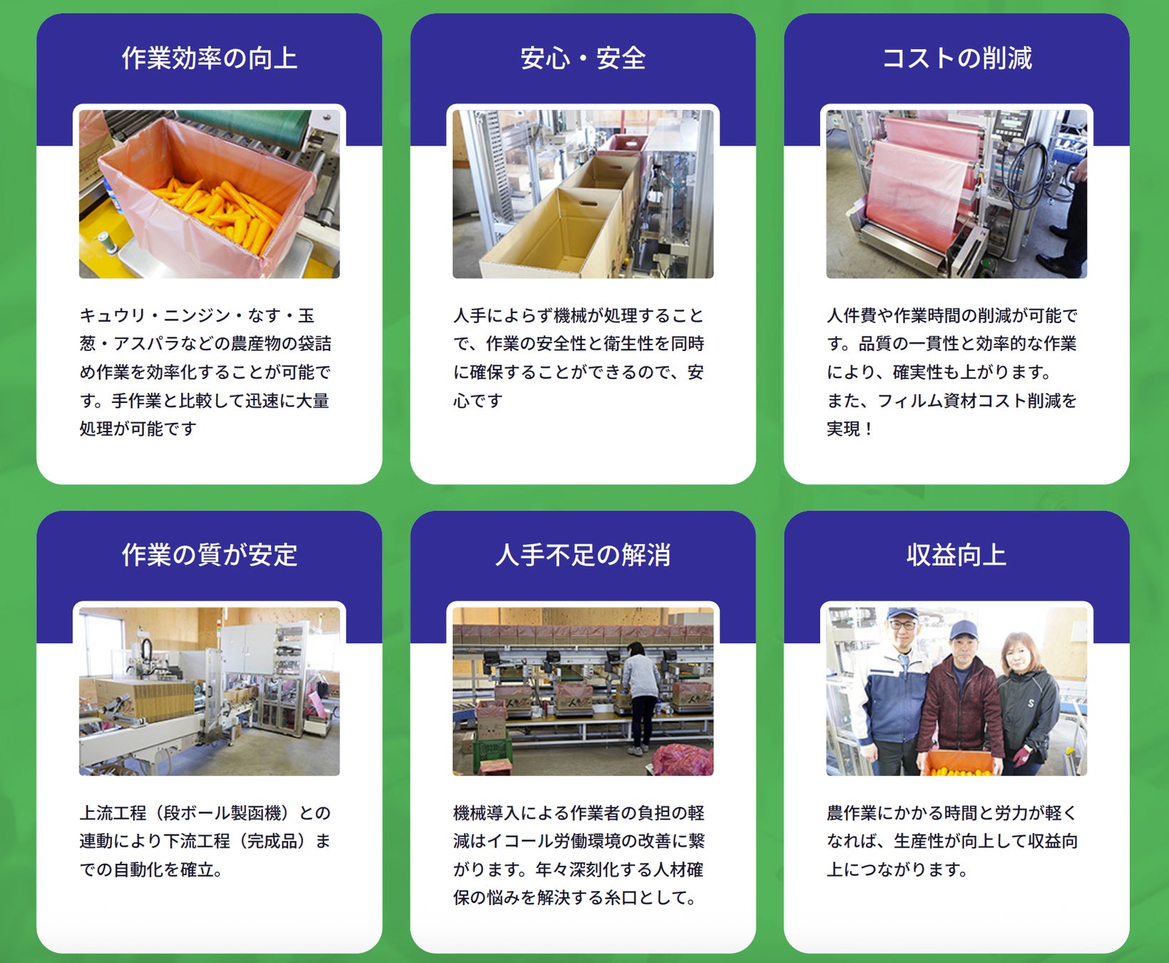 作業効率化と合わせて一石二鳥。農産物の安定供給、農業生産者の収益向上を支えます。