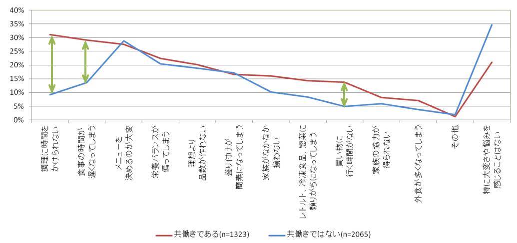 食事や調理についての悩みも調理・食事時間の確保や遅れ