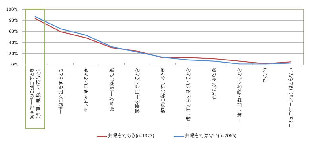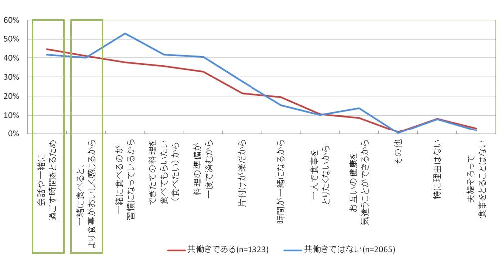 ・共働き夫婦がそろって食事をとる理由は、「会話や一緒に過ごす時間をとるため」