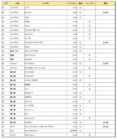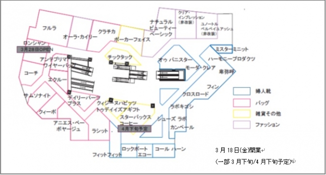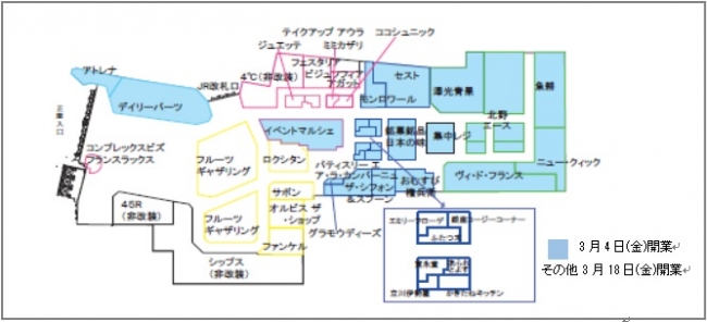 まずは、1階の食料品を中心とした一部エリアにおいて、3月4日(金)に22ショップが先行オープンしましたが、続いて1階服飾雑貨エリアおよび2階において3月18日(金)に42ショップがオープンいたします。