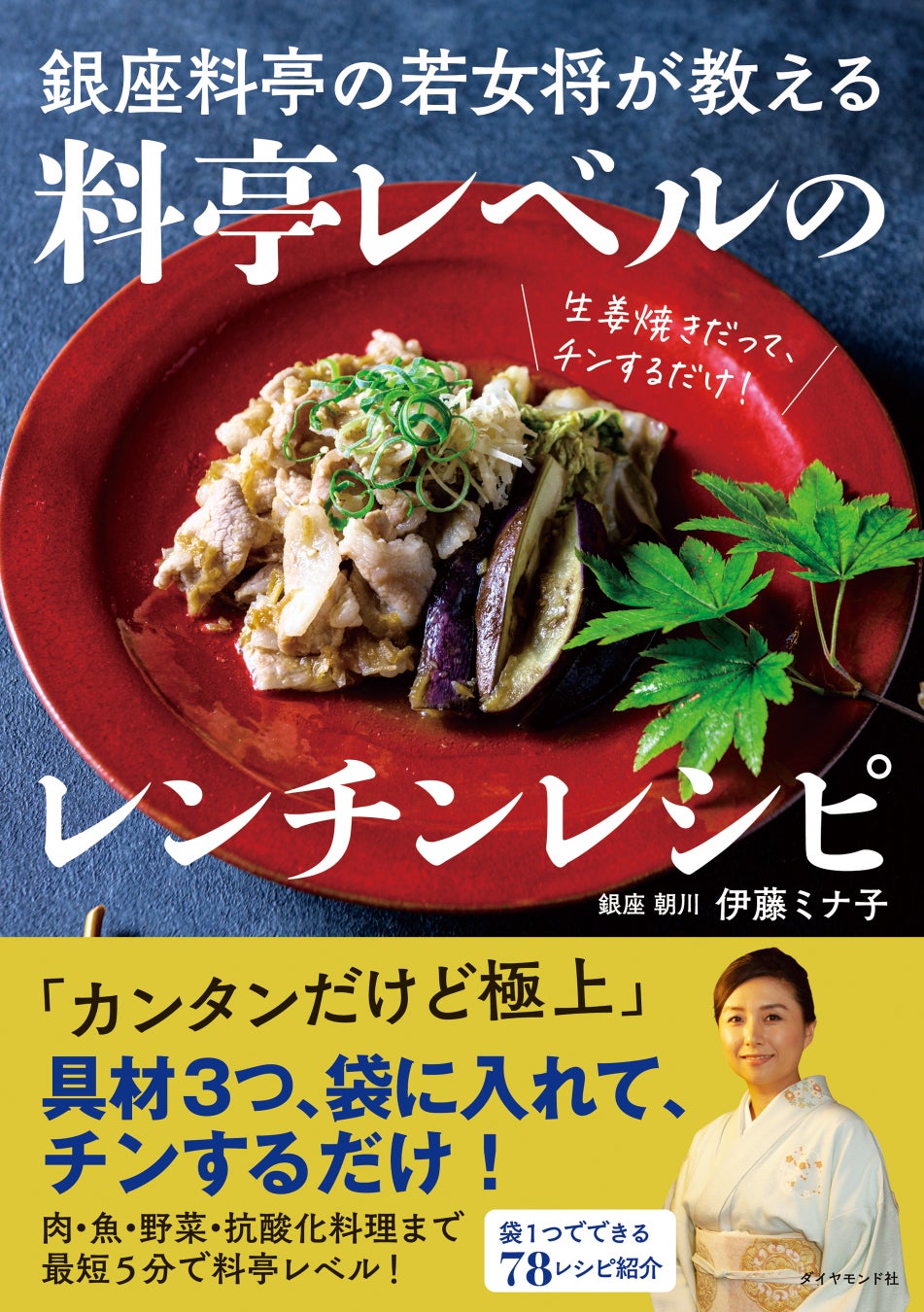 表紙には、家庭料理で絶対人気の「生姜焼き」を使用し、レンジで数分の料理を料亭らしく演出している。