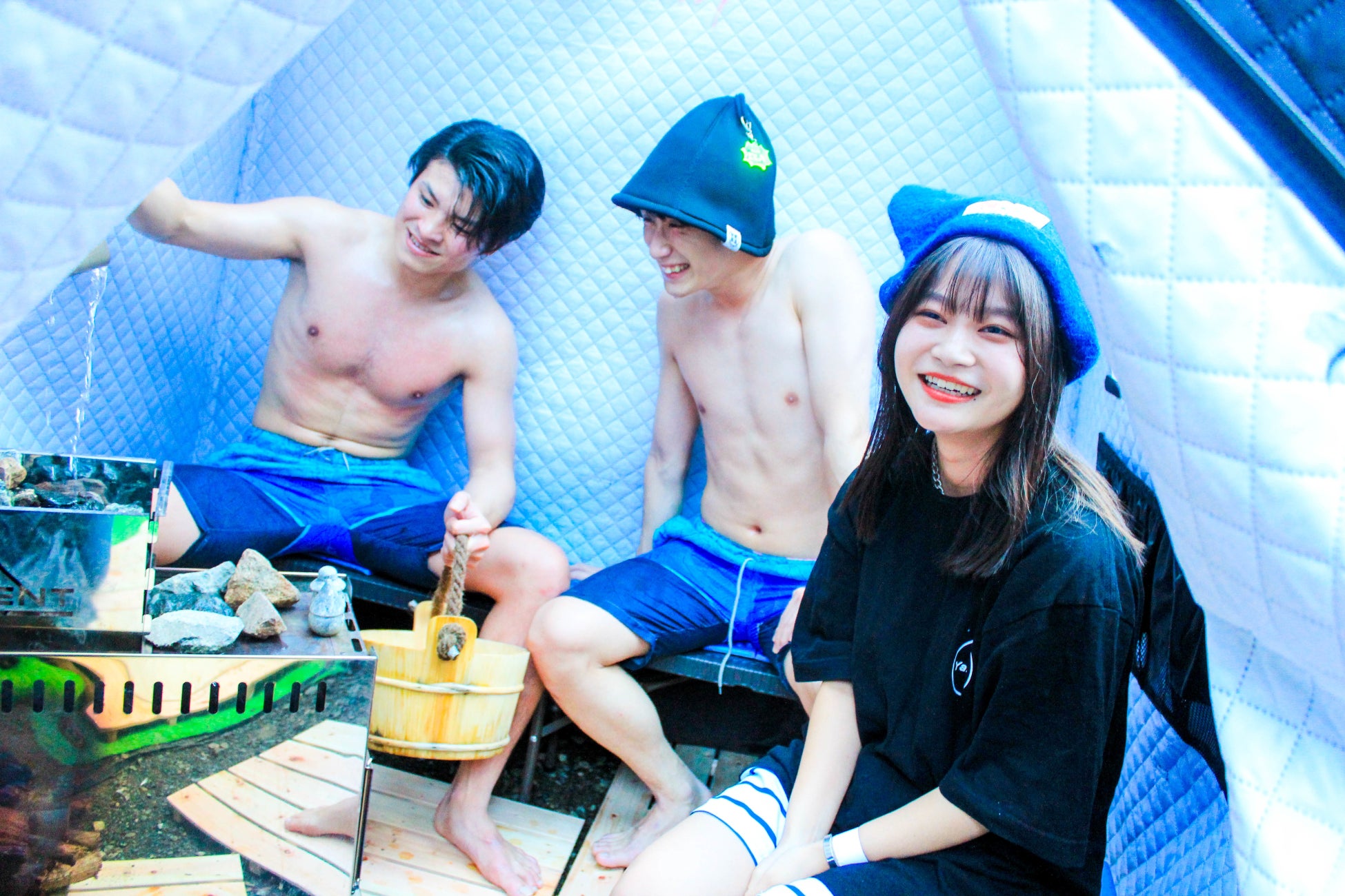 肝心のサウナでは、最大130℃超まで上昇するロシア製本格テントサウナを3基設置。日本全国のサウナに精通したプロサウナスタッフ常駐のもと、お客様のレベルに合わせて温度管理をさせていただきます。