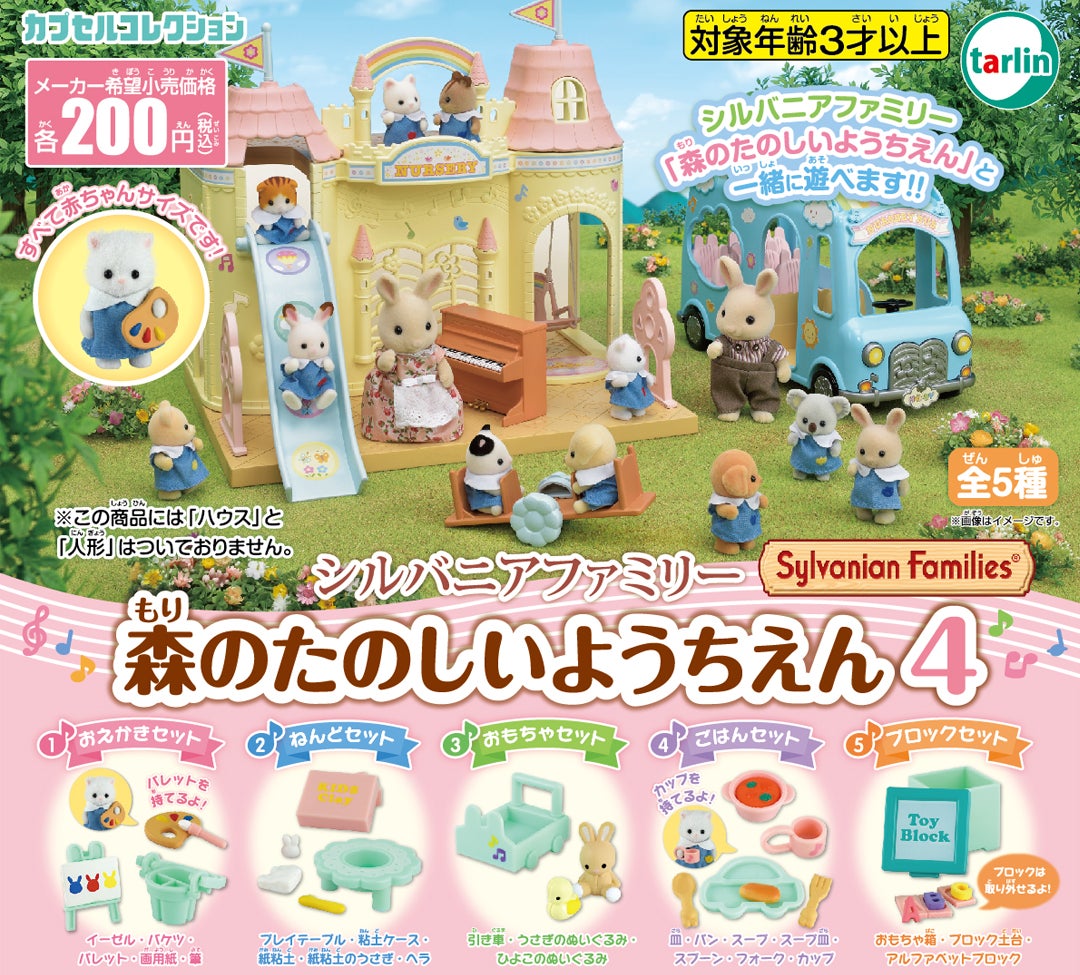 お絵かきセットやごはんセットなど、シルバニアファミリーの赤ちゃんと楽しめるカプセルトイ。