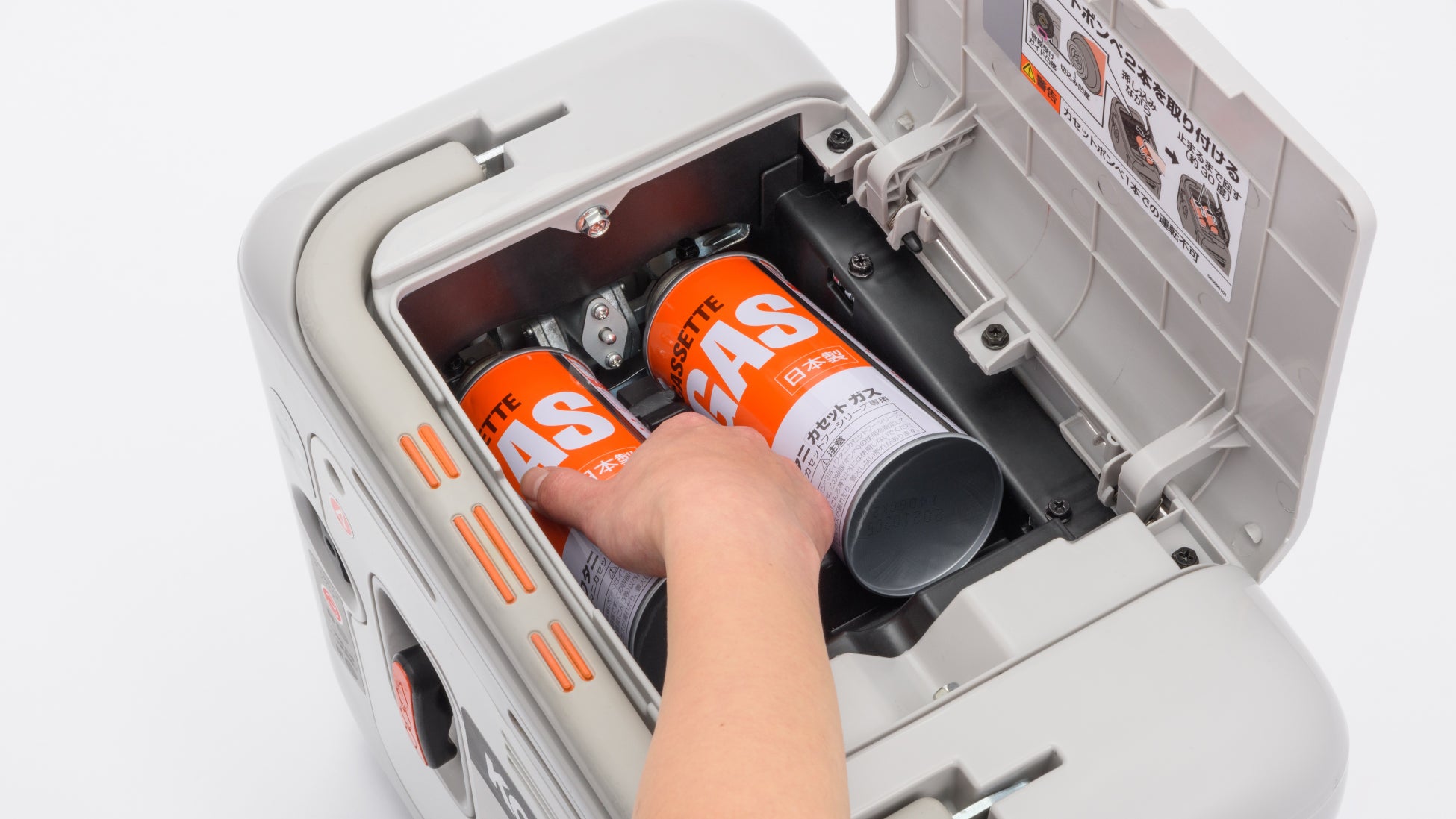 災害時の非常用電源や、趣味やアウトドアシーンに! カセットボンベはJIA認証表示のある市販のメーカー問わず使用可能。