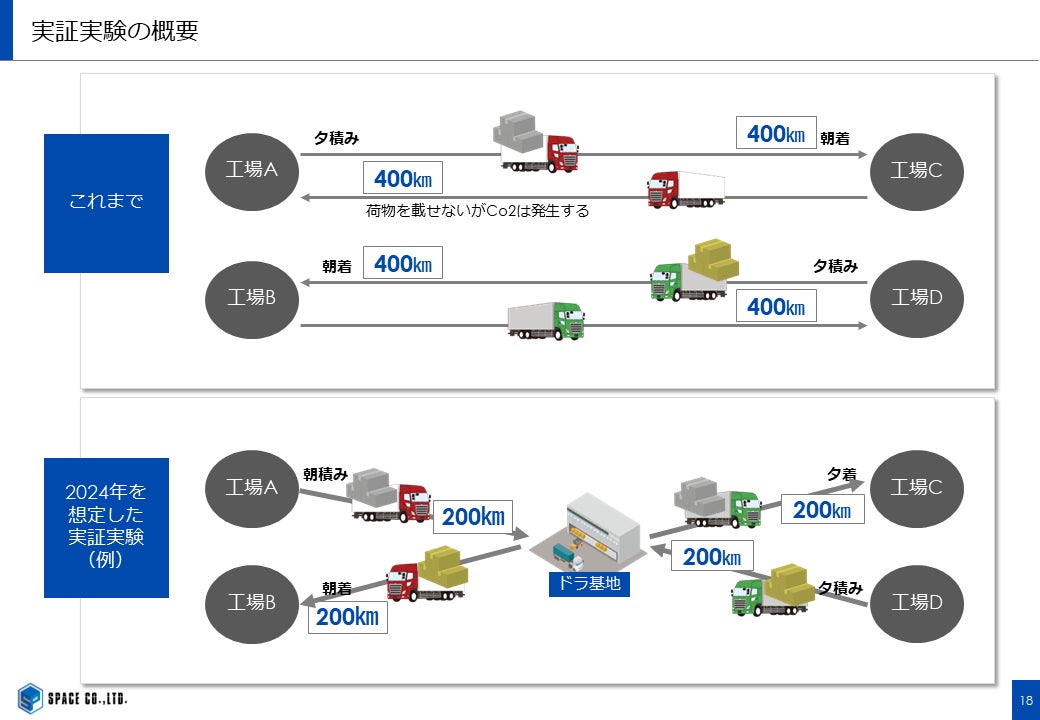 中継輸送における敷地のシェアサービス「ドラ基地」を運営する株式会社スペース(本社:愛知県蒲郡市、代表取締役社長:村井 美映)は敷地の提供する拠点(以下、中継拠点)を予約できるサービスをリリースし、中継輸送の実現に向けた実証実験を開始いたします。