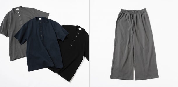 steteco×AKOMEYADRY ストレッチワイドパンツ(グレー/ブラック) 各¥5,390