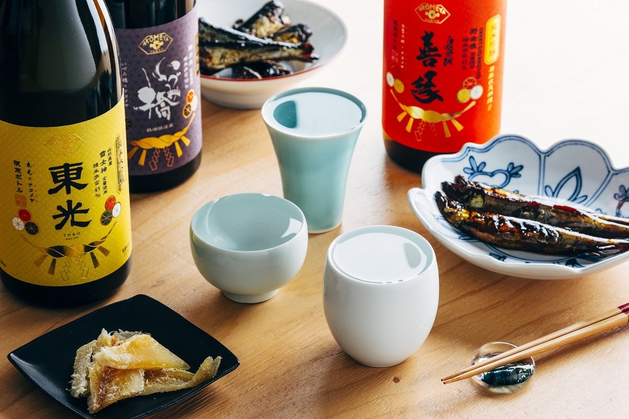 波佐見焼窯元「長十郎窯」による、酒器の形状によって味わいが変化する日本酒の特徴を楽しめる器。吟醸酒・純米酒・本醸造酒の3タイプの種類にあった器での飲み比べや、同じ酒を3種の形状で比べてみるのも面白い。AKOMEYA TOKYO別注カラー。