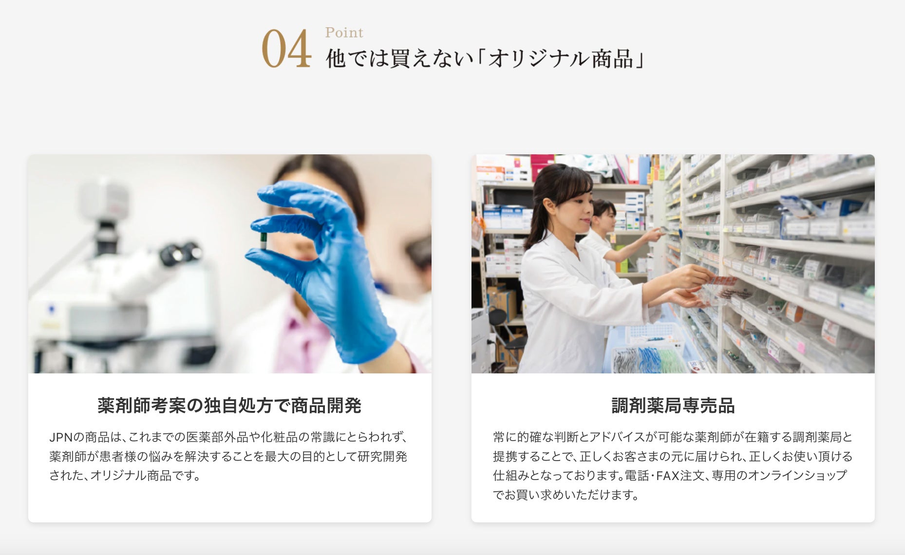 商品の購入は、①オンラインショップ(https://japanpn.com/)、またはコールセンターへの②電話及び③FAXにて注文可能です。