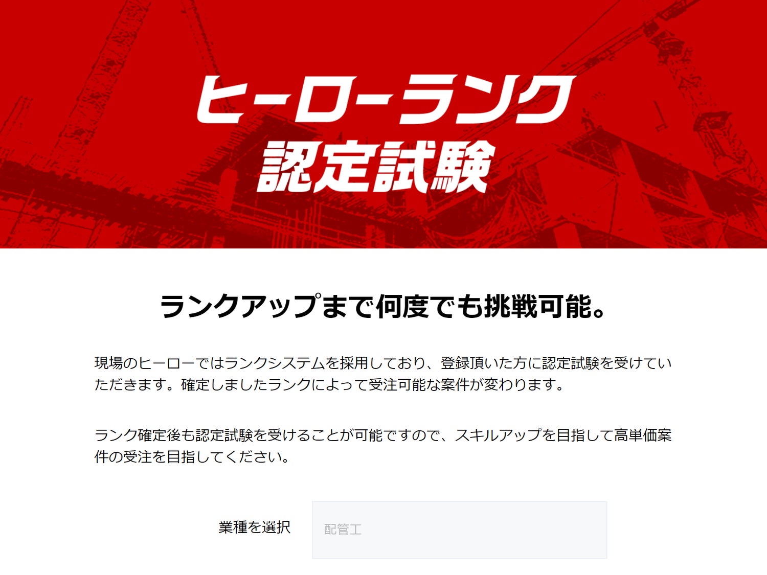 さらに、現場のヒーローオリジナルの「ランク認定試験」制度を導入。職人の試験結果を閲覧することが出来ます。