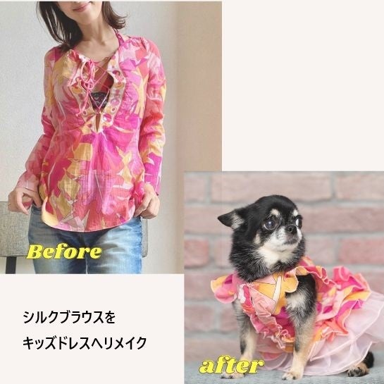 リメイクしたい洋服を「キッズドレス、キッズスーツ、ドッグドレス」にリメイクします。