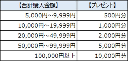 ※期間中、合計5,000円以上のご購入が条件です。