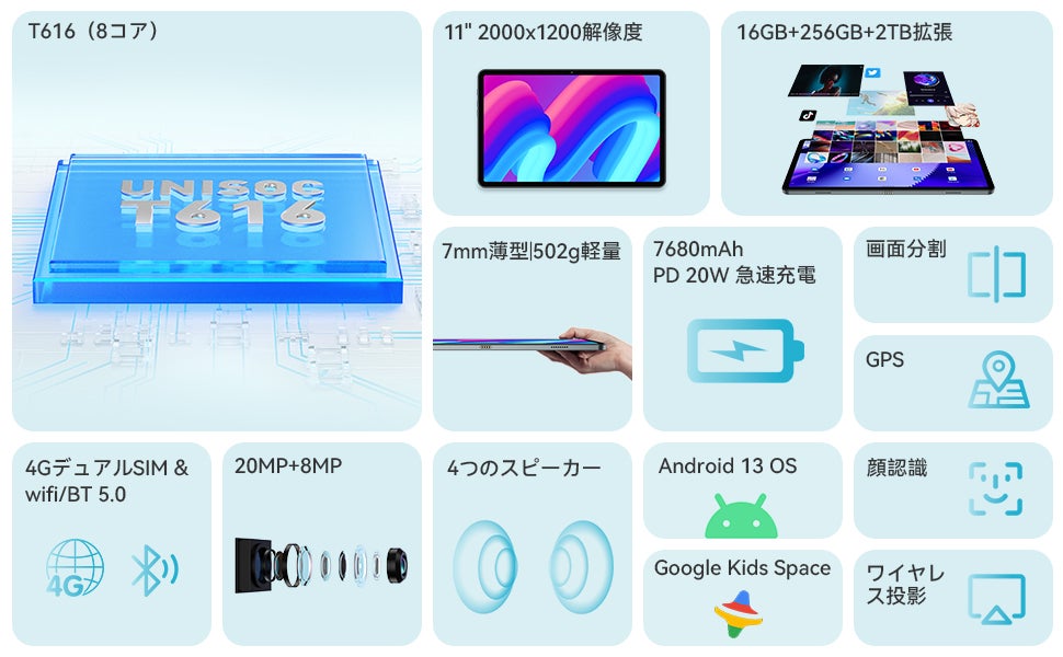 Hpad2 Proは強力なチップTiger T616を採用し、低消費電力の12nmプロセス、2つA75@2.0GHzコア+6つのA55@1.8GHzコアインテリジェントAIチップ、高速計算速度、AnTuTu実行スコアは26万点にも達し、様々な使用シーンに簡単に対応できる。