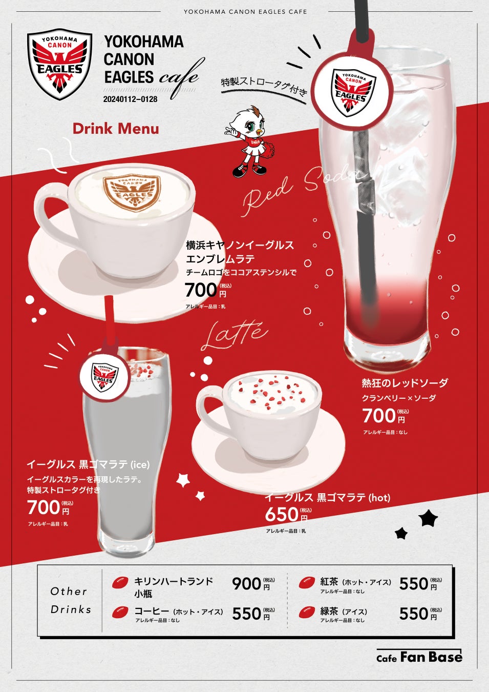横浜をホストエリアとする「横浜キヤノンイーグルス」との期間限定コラボカフェが1/12(金)~1/28(日)にて開催決定いたしました!