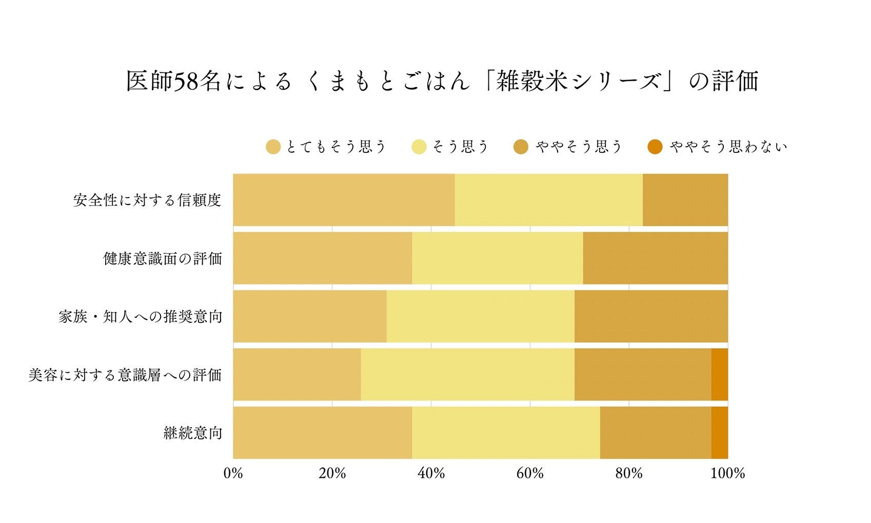 合同会社くまもとごはん(熊本県菊池市、代表社員:冨岡洋三)が販売する「雑穀米シリーズ」が、全国の医師58名を対象としたアンケート調査で高い信頼と評価を得ました。