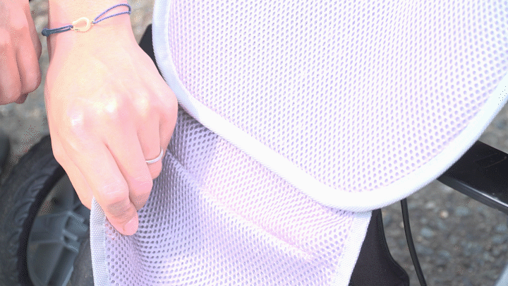 ・メッシュ素材を使用し、ファンからの風がシート全体に均一にいきわたるようにします!